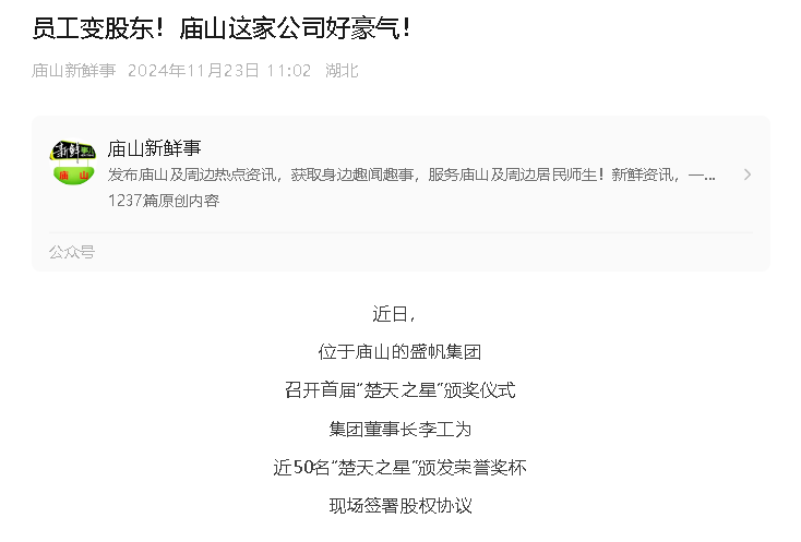 “没想到刚入职公司一年三个月,就得到了2000股股份和6000元现金奖励。”11月21日,盛帆集团00后员工谢志勇在获奖后连连···