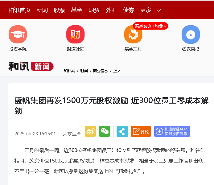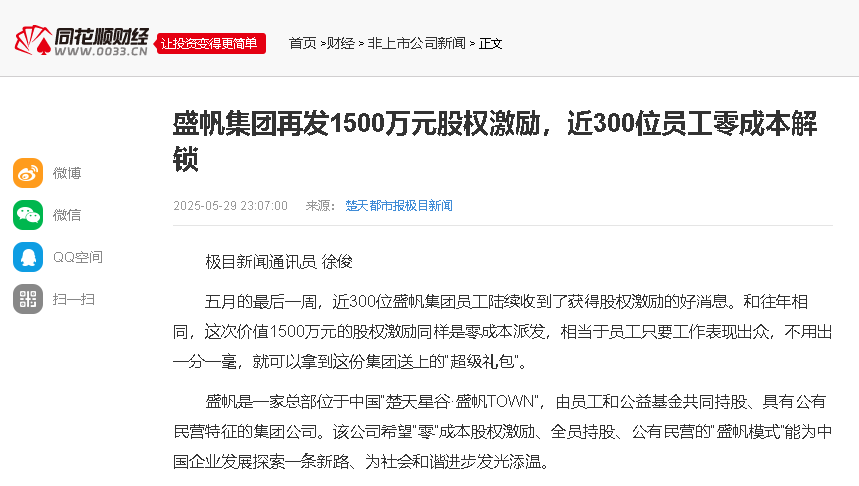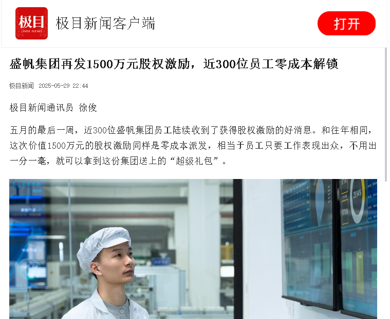 五月的最后一周,近300位盛帆集团员工陆续收到了获得股权激励的好消息。和往年相同,这次价值1500万元的股权激励同样是零···